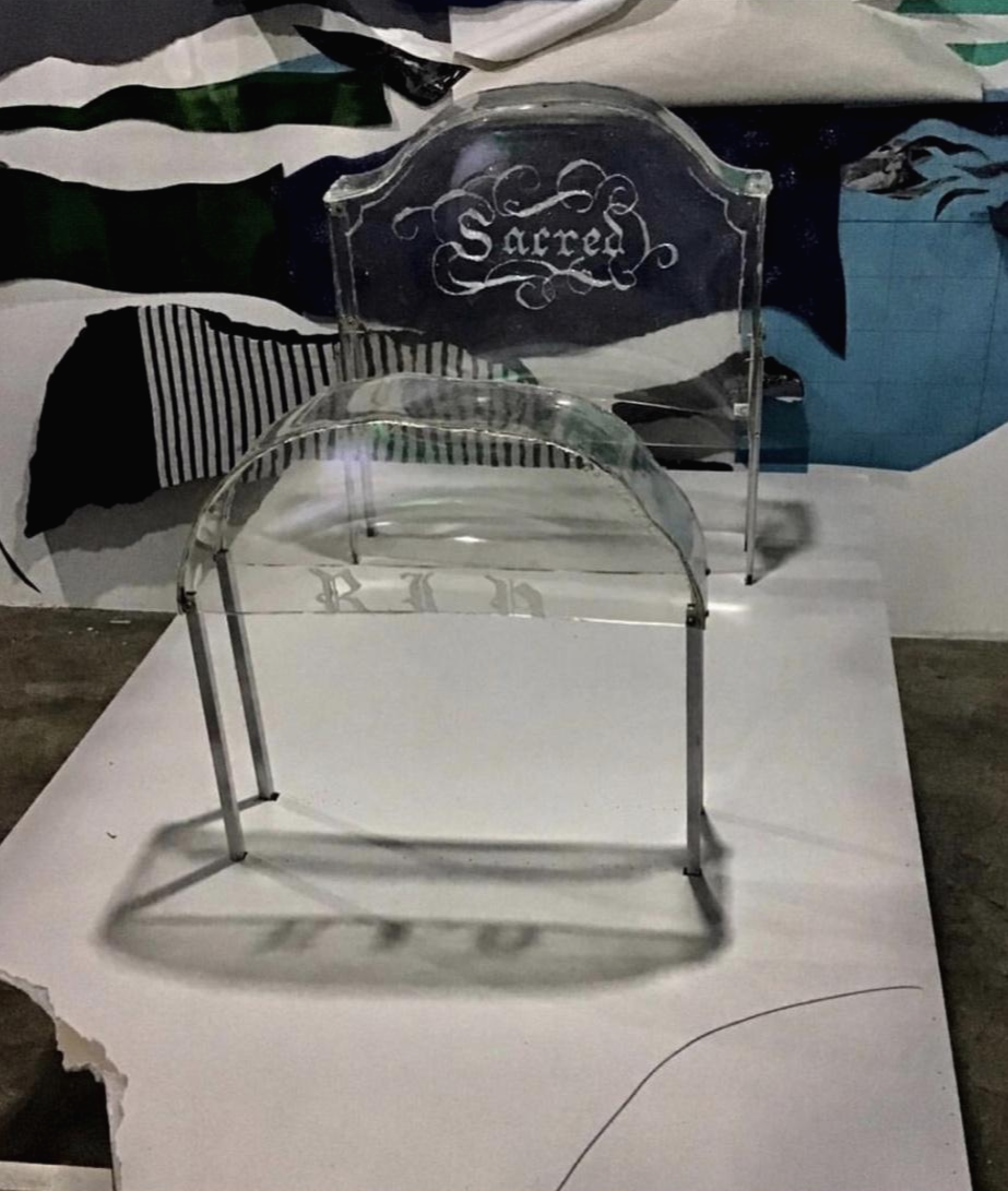 두 작업에서 ‘먼 미래에 그럴지도 모르는 일’을 상상하여 현재에 ‘예견’처럼 보여주는 방식은 '동굴벽화'(2018)와 '자라는 묘비'(2018)와도 공통되는 특징이다. 전자는 지금의 서울의 모습을 물질적으로 스티로폼에 기록하며 남기고, 후자는 땅에서 묘비가 어떤 식으로 성장을 하는지 연이어 열린 두 번의 전시(시청각 <애프터 10.12>에 이어 열린 175갤러리의 <슈퍼포지션>)에서 보여준다. <자라는 묘비>는 첫 번째 전시에서 마치 바닥에서 자라나는 것처럼 전시장 바닥에 놓였다가, 두 번째 전시에서 단순히 같은 재료로 키를 키우지 않고 마치 연명 수술을 받은 듯이 철제 막대를 붙여 높이를 올렸다. 이때 묘비가 자란다는 애초의 기묘한 전제는 다른 재료를 추가함으로써 묘비보다 더 복합적인 형태로 성장한다. 작품 자체의 완결성을 거부하면서 마치 육면체 주사위를 던지면 1도 3도 안 나오고 7이나 알파벳 문자가 나오는 바와 같이 작품은 ‘상상’을 통해 정해진 조건 (즉 묘비가 곧 묘비여야만 하는) 내의 확률 너머에 수없이 존재하는 가능성을 ‘이미지화’ 하여 보여준다.